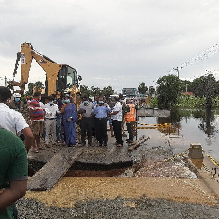 மன்னார் மாவட்டத்தில் கடந்த ஓரிரு தினங்களாக பெய்துவரும் கன மழை காரணமாக மன்னார் தலைமன்னார் ஏ 14 பிரதான பாதையில் அமைக்கப்பட்டிருந்த கல்வெட்டு உடைந்தமையால் இப் பாதையில் போக்குவரத்து தடைபட்டுள்ளது. இதனை உடனடியாக சீர் செய்யும் படி வீதி அபிவிருத்தி அதிகார சபைக்கு மன்னார் அரச அதிபரால் விடுக்கப்பட்ட வேண்டுகோளையடுத்து தற்காலிகமாக போக்குவரத்து செய்வதற்கான புனரமைப்பு நடவடிக்கை மேற்கொள்ளப்பட்டு வருகின்றது.