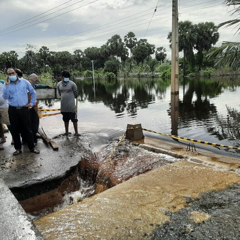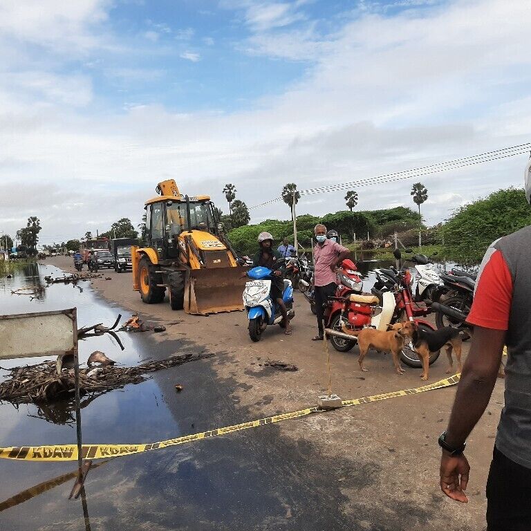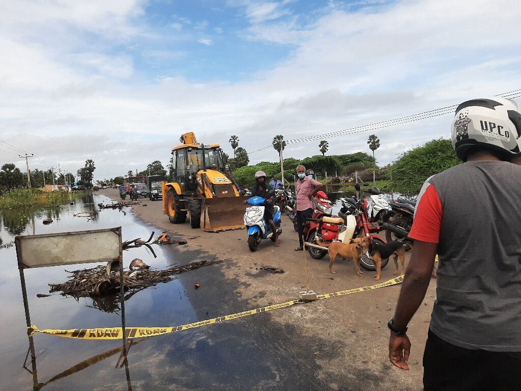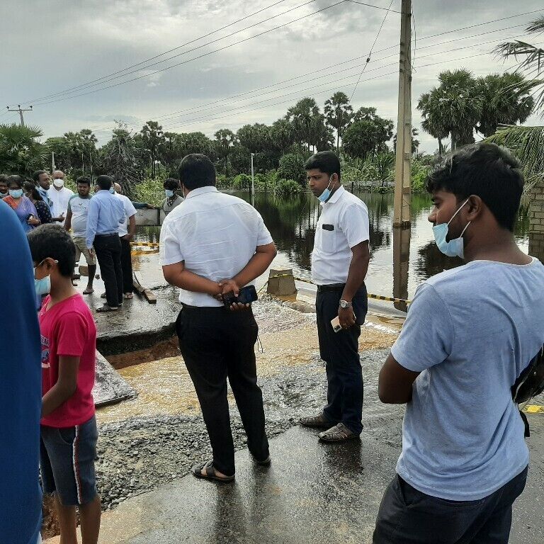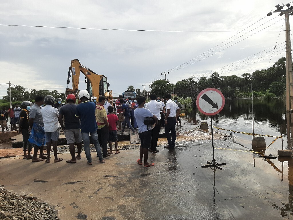 அத்துடன் கடும் மழையும் வேகமான நீரோட்டத்தால் மன்னார் தலைமன்னார் ஏ 14 பிரதான வீதியில் அமைக்கப்பட்டிருந்த கல்வெட்டு உடைந்தமையால் இவ் வீதி 29.11.2021 அன்று திங்கள் கிழமை போக்குவரத்துக்கு தடைபட்டுள்ளது.
