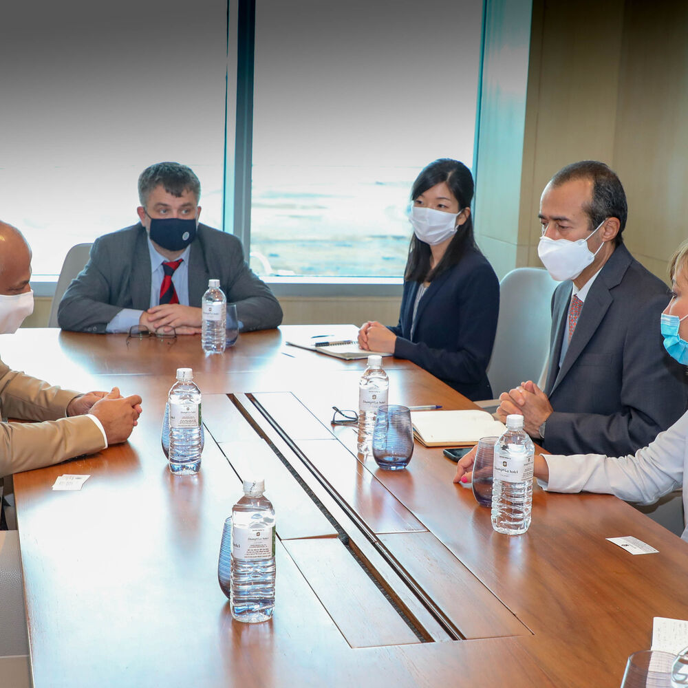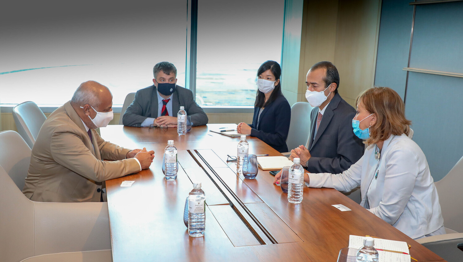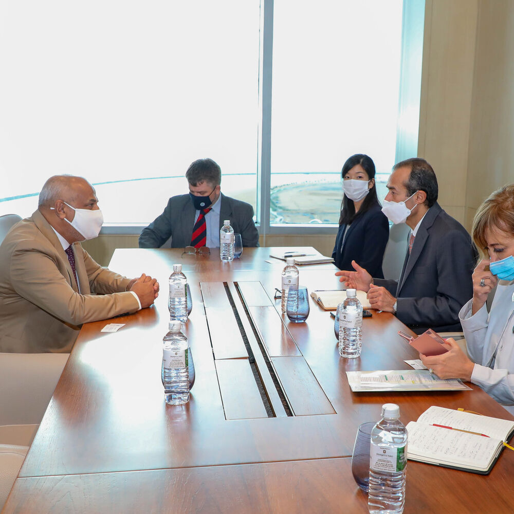 ஐநா சபையிலிருந்து வருகை தந்துள்ள அதன் மத்திய கிழக்கு, ஆசிய மற்றும் பசுபிக் பிராந்தியங்களுக்குரிய அரசியல் மற்றும் சமாதான விவகாரங்களுக்கான பிரதிச் செயலாளர் நாயகம் காலித் ஹையரி, மற்றும் இலங்கைக்கான ஐநா வதிவிட இணைப்பாளர் ஹனா சிங்கர் உள்ளிட்ட உயர்மட்ட தூதுக்குழுவினர், முஸ்லிம் காங்கிரஸ் தலைவர் ரவூப் ஹக்கீமை, வியாழக்கிழமை (24) கொழும்பு ஷங்கரிலா ஹோட்டலில் சந்தித்து, முஸ்லிம்கள் மற்றும் சிறுபான்மைச் சமூகத்தினர் எதிர்நோக்கும் பிரச்சினைகள் , சமகால அரசியல் சூழ்நிலை என்பன குறித்து கலந்துரையாடினர்.