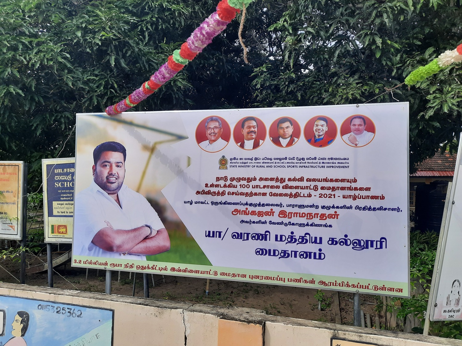அதேவேளையில் நாடு முழுவதும் அனைத்துக் கல்வி வலயங்களையும் உள்ளடக்கி 100பாடசாலை விளையாட்டு மைதானங்களை அபிவிருத்தி செய்யும் தேசிய திட்டத்தின் கீழ் யாழ் மாவட்டத்தில் அங்கஜன் எம்.பியின் சிபாரிசில் 16மில்லியன் ரூபாய் ஒதுக்கீட்டில் 5பாடசாலை மைதானங்கள் புனரமைக்கப்படுகின்றன.