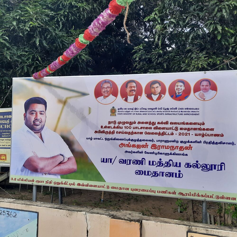 யாழ் மாவட்ட பாராளுமன்ற உறுப்பினரும்,மாவட்ட அபிவிருத்தி ஒருங்கிணைப்புக் குழுத்தலைவருமான அங்கஜன் இராமநாதனின் சிபாரிசுக்கு அமைவாக யாழ் மாவட்டத்தில் 66மில்லியன் ரூபாய் ஒதுக்கீட்டில் 15விளையாட்டு மைதானங்கள் அபிவிருத்தி செய்யப்பட்டு வருகின்றன.