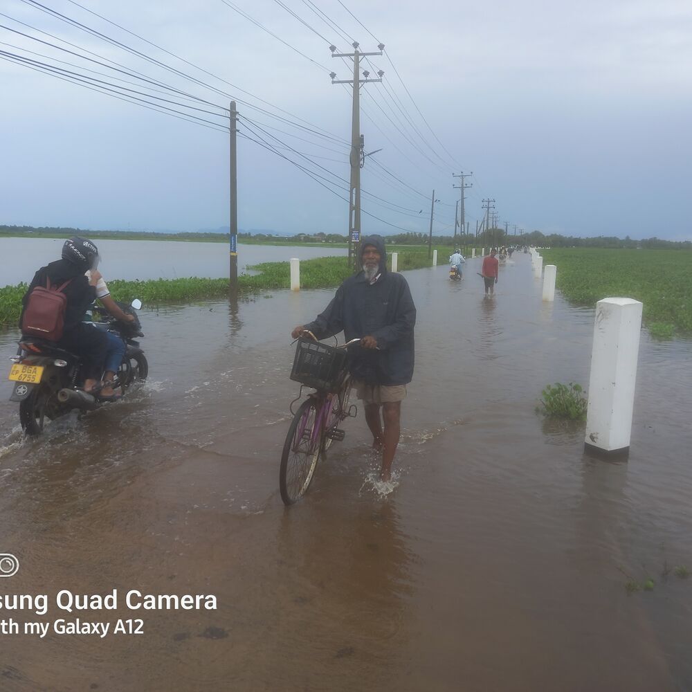 மழை தொடர்ந்து வெள்ள நீர் தேங்கினால் விதைத்த நெற்பயிர்கள் பாதிப்படையும் அபாயமுள்ளதாகவும் விவசாயிகள் கவலை தெரிவிக்கின்றனர்.