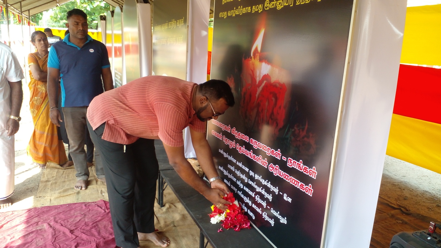 தமிழ் தேசிய மக்கள் முன்னணியின் மகளிர் அணி செயலாளர் திருமதி கிருபா கிரிதரன் தலமையில் இடம் பெற்ற இந்நிகழ்வில் பொது ஈகை சுடரினை இரண்டு மாவீரர்களின் பெற்றோர்கள் ஏற்றிவைத்துடன் மாவீர்களுக்கு அக வணக்கம் இடம் பெற்றதை தொடர்ந்து மலர் அஞ்சலி செலுத்தப்பட்டது.
