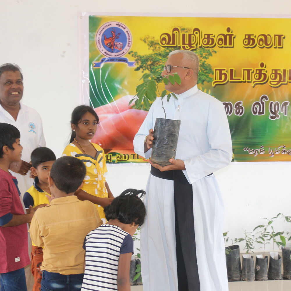 பேசாலை 'விழிகள் கலா முற்றம்' மரம் நாட்டு விழாவை சனிக்கிழமை (05.11.2022) பேசாலையில் முன்னெடுத்தது. இதில் அதிதியாக கலந்து கொண்ட பேசாலை பங்கு தந்தையும் மன்னார் பிரஜைகள் குழுத் தலைவருமான அருட்பணி ஏ.ஞானப்பிரகாசம் அடிகளார் தொடர்ந்து உரையாற்றுகையில்