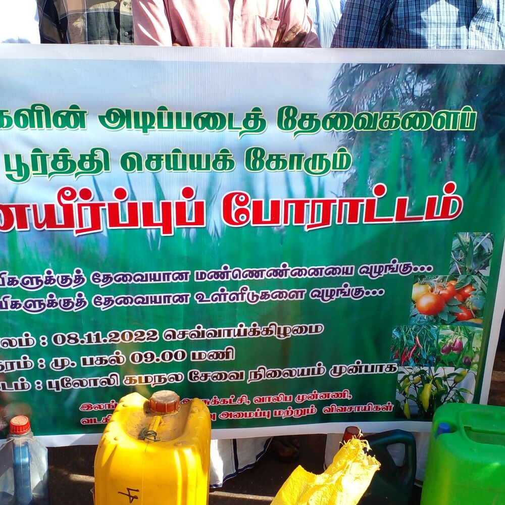 விவசாயிகளில் அடிப்படை தேவையான மண்ணெண்ணெய், மற்றும் உரம், மருந்துவகை உட்பட்ட உள்ளீடுகளை வழங்க கோரியே காலை 9:00 மணியளவில் புலோலி கமநல சேவை நிலைய முன்றலில் ஆரம்பித்த போராட்டம் பருத்தித்துறை பிரதேச செயலகம் வரை சென்று அங்கு யாழ் மாவட்ட செயலருக்கான மகஜர் ஒன்றினை பருத்தித்துறை பிரதேச செயலரிடம் வழங்கி வைத்ததுடன் போராட்டம் நிறைவிற்க்கு வந்தது.