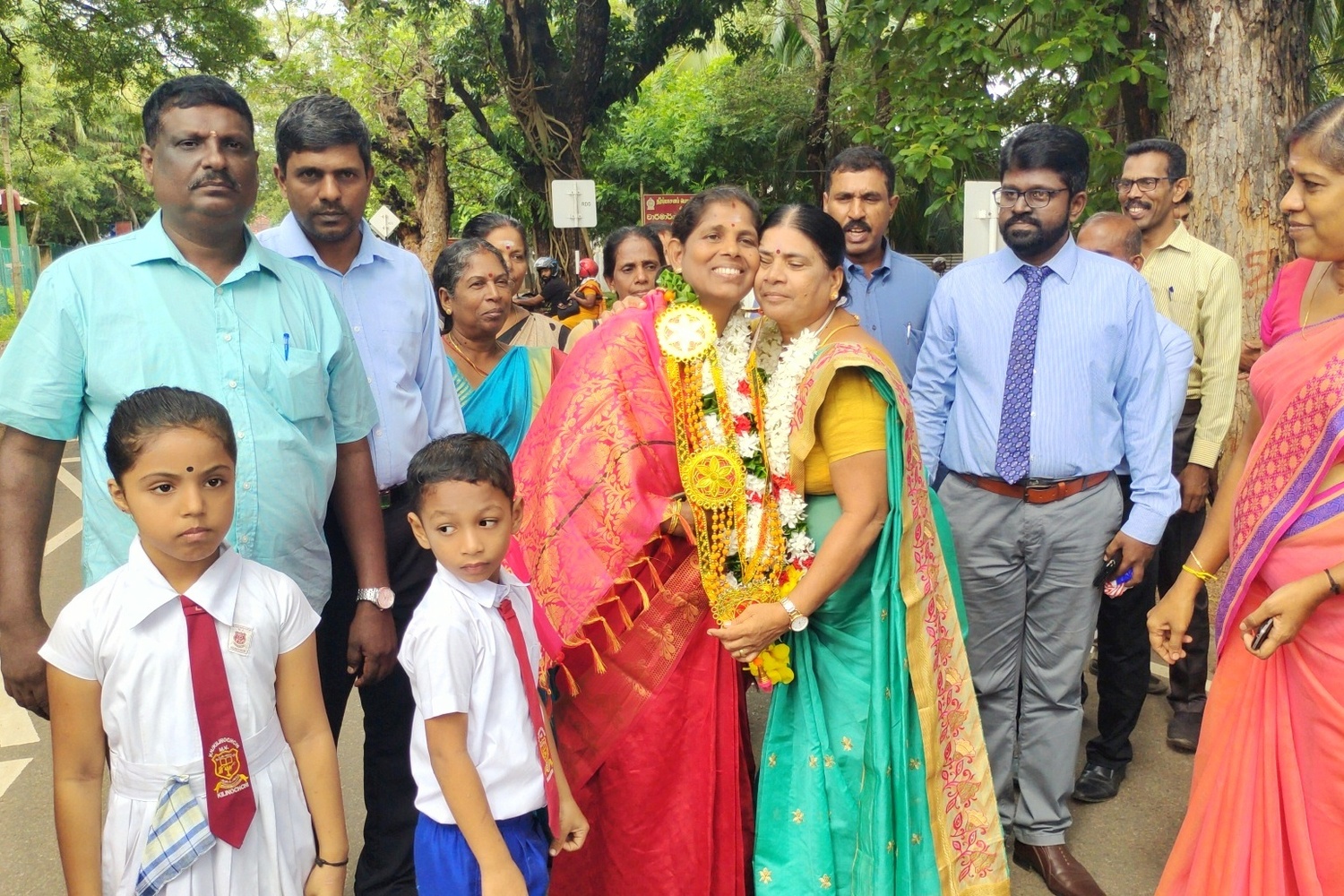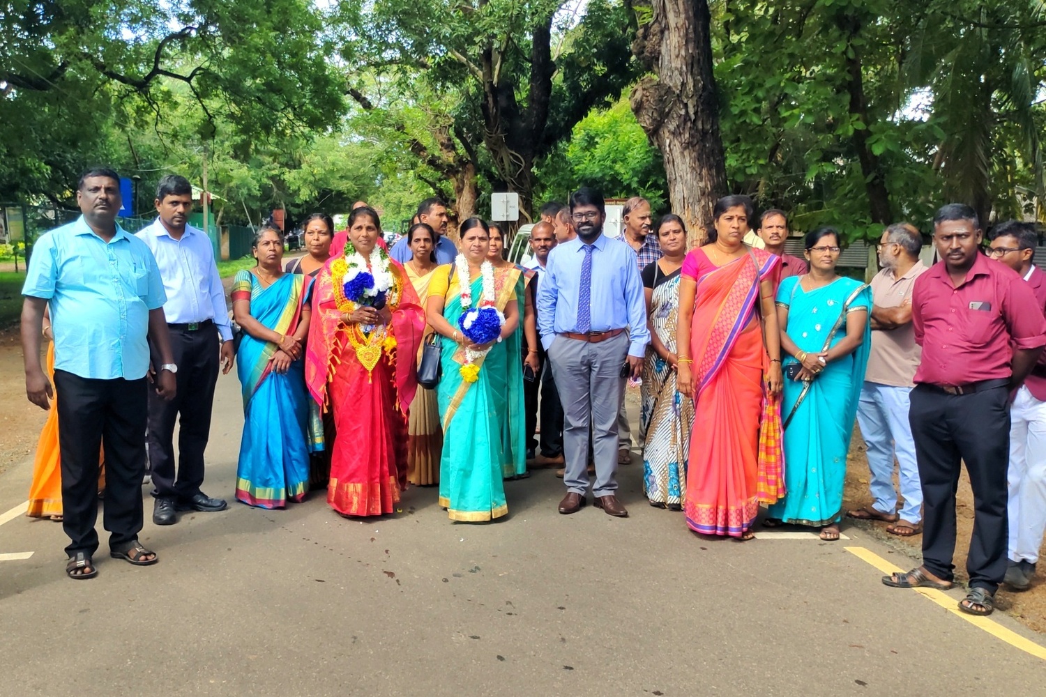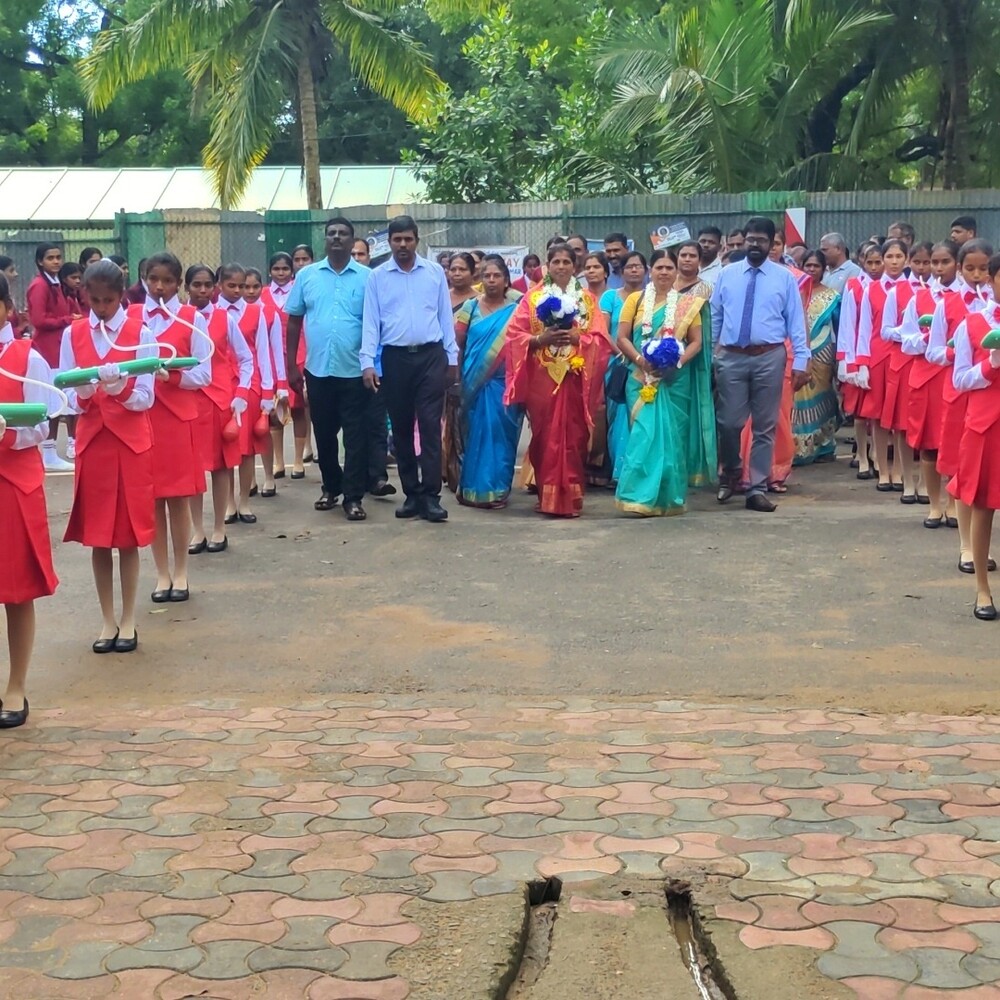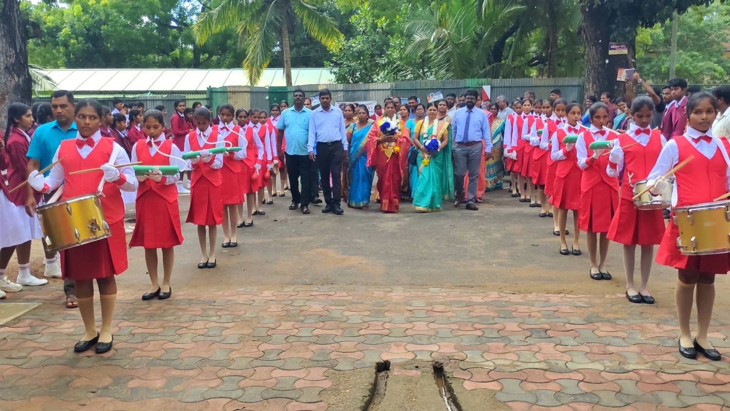 குறித்த அதிபரை வரவேற்கும் நிகழ்வு காலை 9.30 மணியளவில் இடம்பெற்றது. ஓய்வு பெற்ற பாடசாலை முதல்வர், பாடசாலை சமூகம் புதிய அதிபரை அன்புடன் வரவேற்றனர்.