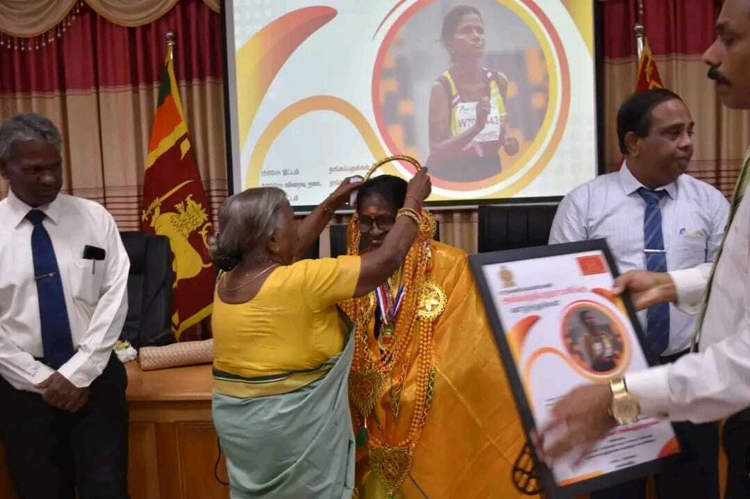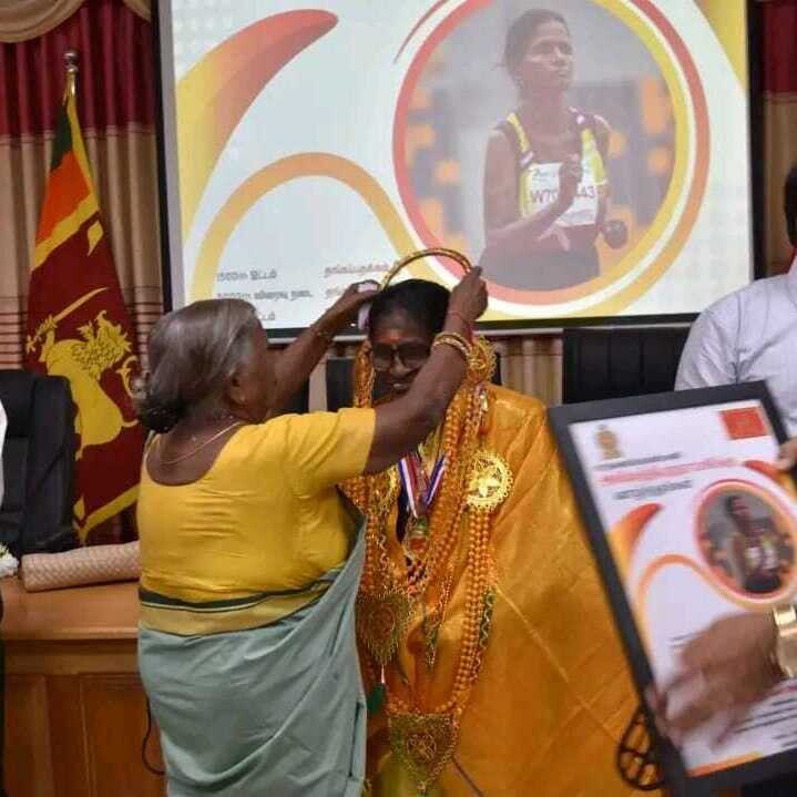 72 வயதில் இரண்டு தங்கப்பதக்கங்கள் வென்று உலக சாதனை படைத்த முல்லைத்தீவை சேர்ந்த அகிலத்திருநாயகிக்கு நேற்று (29) புதன் யாழ்ப்பாணத்தில் கௌரவிப்பு இடம்பெற்றது.
