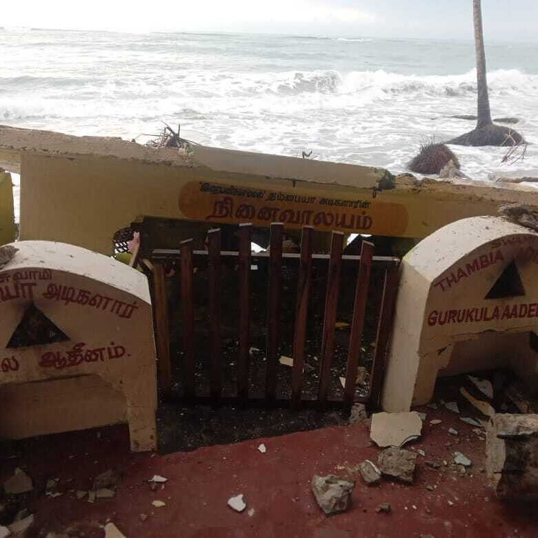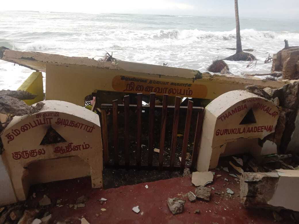 தம்பையா சுவாமிகளின் சமாதி ஆலயம் சேதமாக்கப்பட்டு சமாதியும், சிவன் சிலையும் கடலுக்குள் இழுத்துச் செல்லப் பட்டுள்ளன.