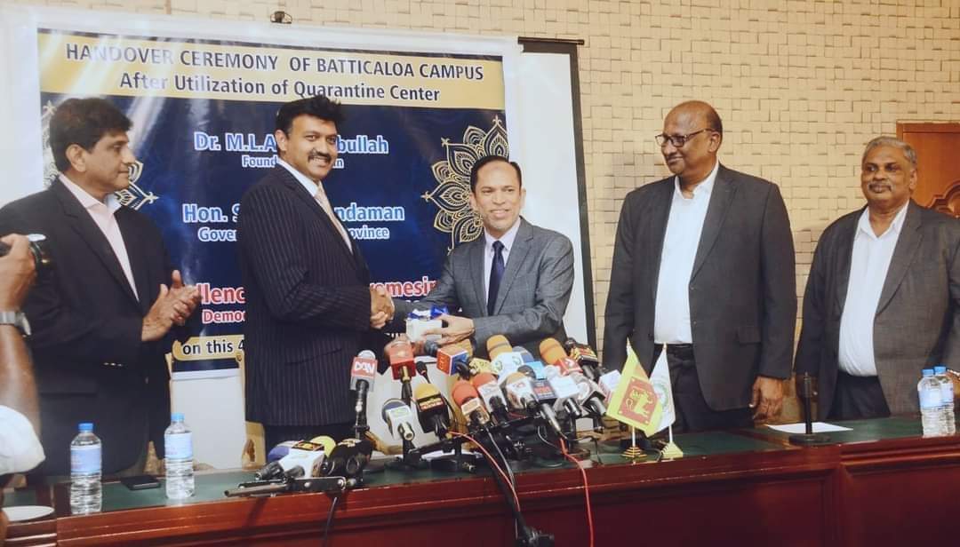 மட்டக்களப்பு தனியார் பல்கலைக்கழகம் கிழக்கு மாகாண முன்னாள் ஆளுநரும் மட்டக்களப்பு பல்கலைக்கழகத்தின் தவிசாளருமான எம்.எல்.ஏ.எம். ஹிஸ்புல்லாஹ்விடம் உத்தியோகபூர்வமாக கையளிக்கப்பட்டது.