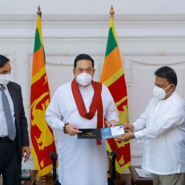 வெகுசன ஊடக அமைச்சர் கௌரவ டலஸ் அழகப்பெரும அவர்கள் அதற்கான முதல் நாள் உறை மற்றும் முத்திரையை கௌரவ பிரதமர் மஹிந்த ராஜபக்ஷ அவர்களிடம் வழங்கினார்.