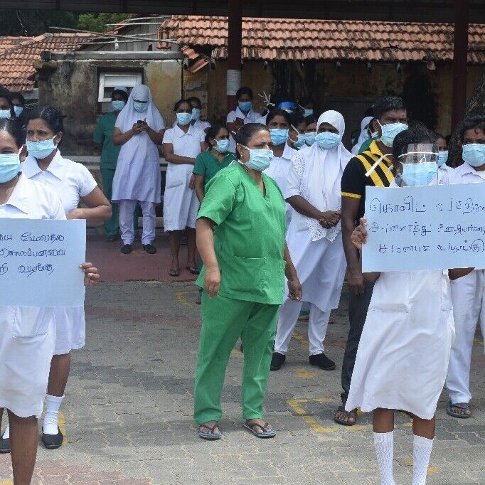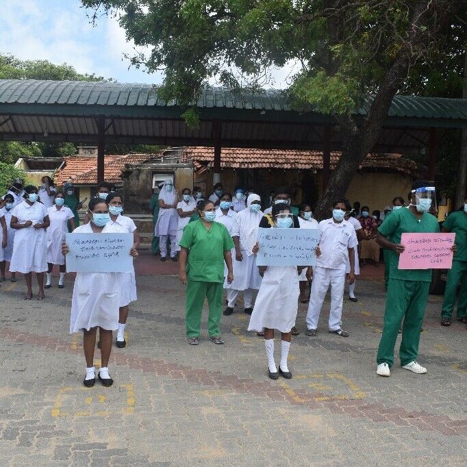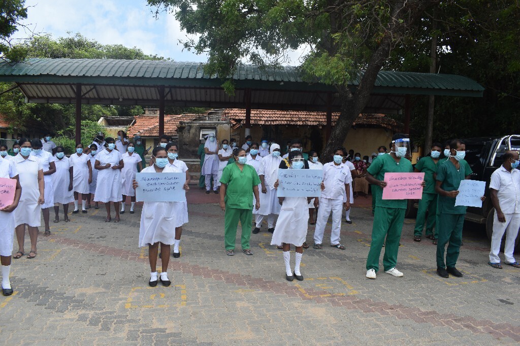 எமக்கு ஆரம்பத்திலிருந்து இந்த கோவிட் காலத்தில் வழங்கப்பட்ட7500 ரூபா கொடுப்பனவு இப்போது நிறுத்தப்பட்டுள்ளது. ஆனால், நாங்கள் எமது கடமையை எந்த விதமான குறைபாடுகளின்றி செய்வதில் மிகவும் அவதானமாக இருப்பதுமல்லாமல் செய்யத் தவறவுமில்லை என்பதை இங்கு குறிப்பிட விரும்புகின்றேன். அதாவது, இப் போராட்டத்தில் எந்த விதத்திலும் வைத்திய சாலைக்கு வரும் நோயாளிகளுக்கோ அல்லது உள்ளிருக்கும் நோயாளிகளுக்கோ எவருக்கும் எந்தவிதப் பாதிப்புமில்லாமல் எமது கடமையில் வெகு கவனமாக இருக்கின்றோம்