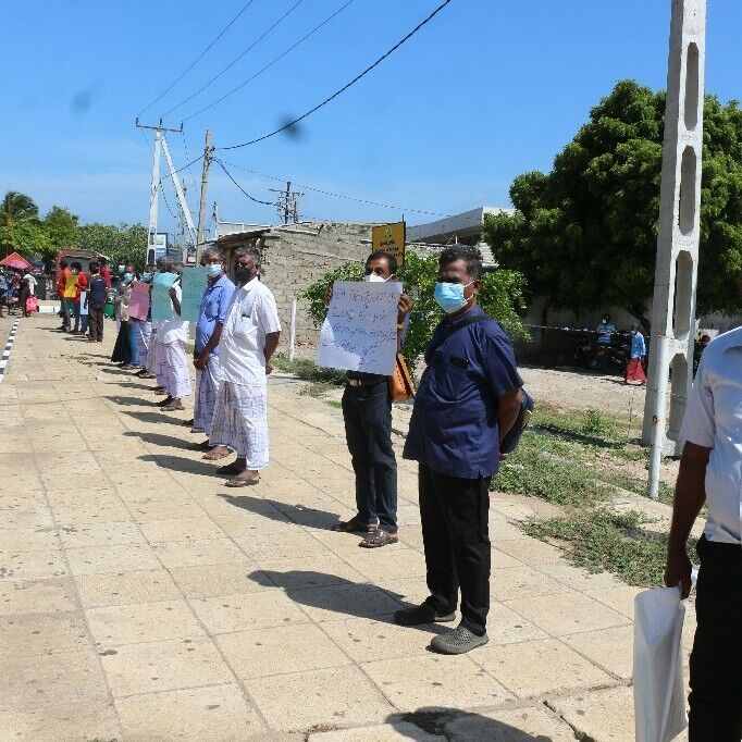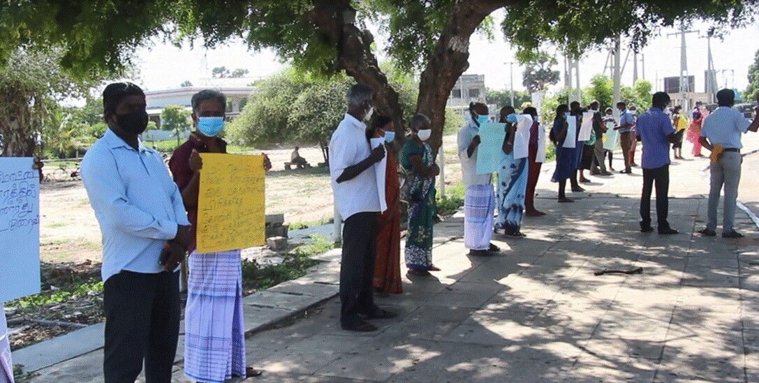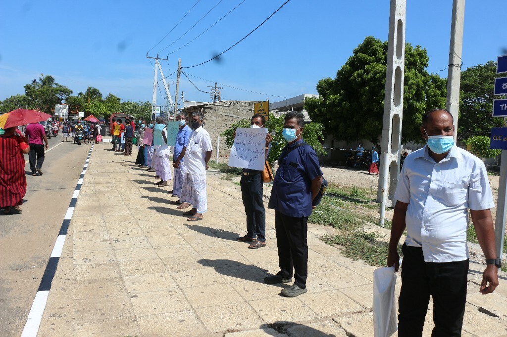 இன்று திங்கள் கிழமை (18.10.2021) காலை மன்னார் நகரின் நாற்சந்தியில், மடு பிரதேச பகுதியிலுள்ள பெரியபண்டிவிரிச்சான் மற்றும் சிறியபண்டிவிரிச்சான் மக்கள் கவனயீர்ப்பு போராட்டத்தில் குதித்தார்கள்.