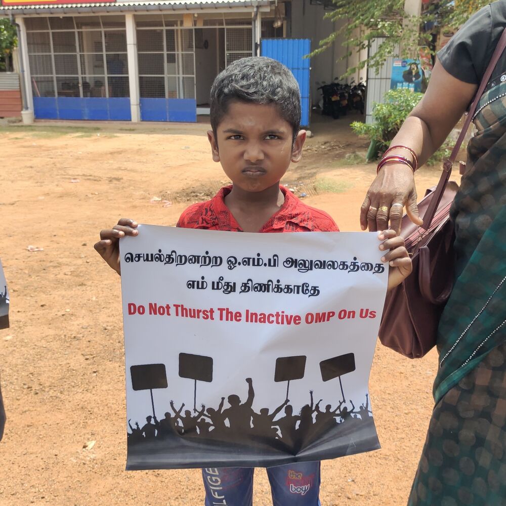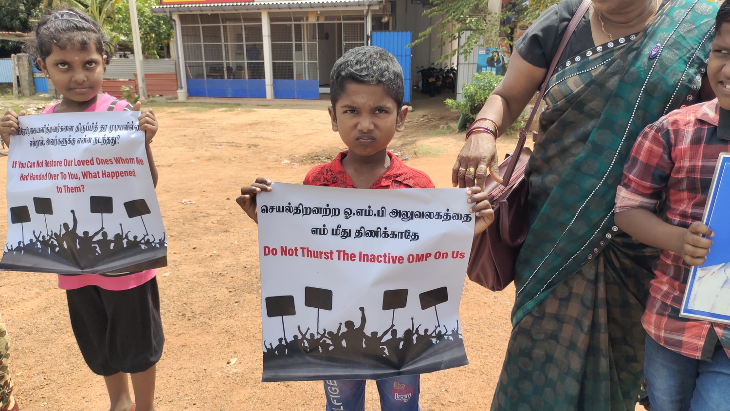 சிறுவர் தினமான இன்றைய தினம் இடம்பெற்ற போராட்டத்தில், வலிந்து காணாமல் ஆக்கப்பட்டோரின் உறவுகளது உறவினர்களான சிறுவர்களும் கவனயீர்ப்பில் ஈடுபட்டனர்.