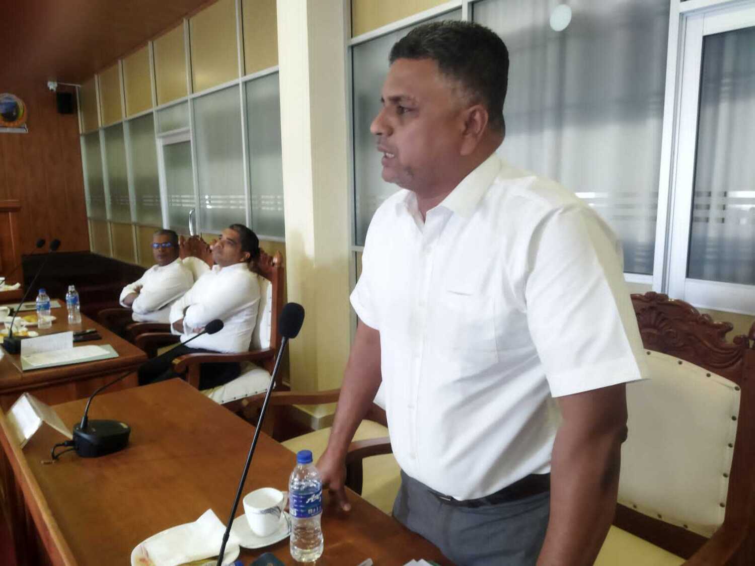 இதன்போது சபையின் ஒரேயொரு தமிழ் உறுப்பினரும், அகில இலங்கை மக்கள் காங்கிரஸ் கட்சியைச் சேர்ந்தவருமான கே. சுதாமதி திருகோணமலை, திருக்கோணஸ்வரர் ஆலய, பௌத்த சிங்கள ஆக்கிரமிப்பு தொடர்பான கண்டனப் பிரேரணையை சபையில் முன்மொழிந்தார்.