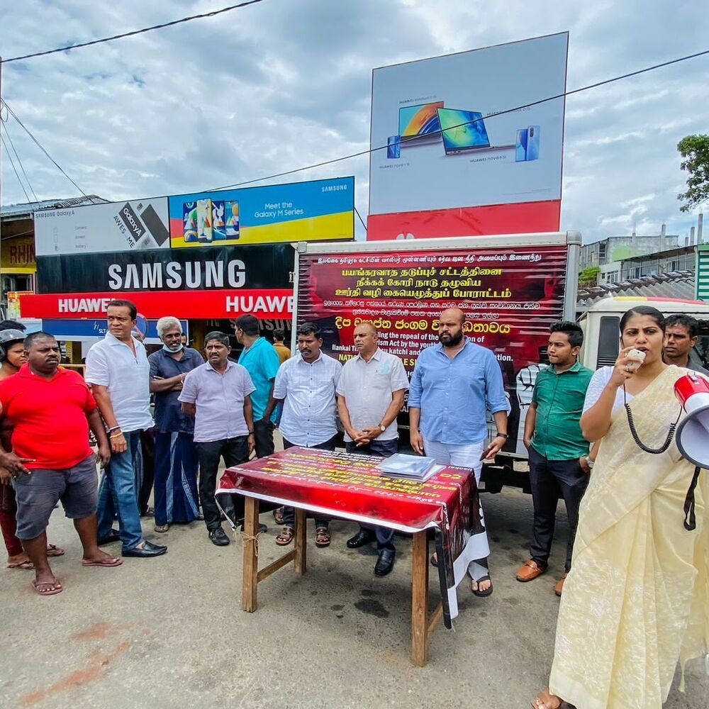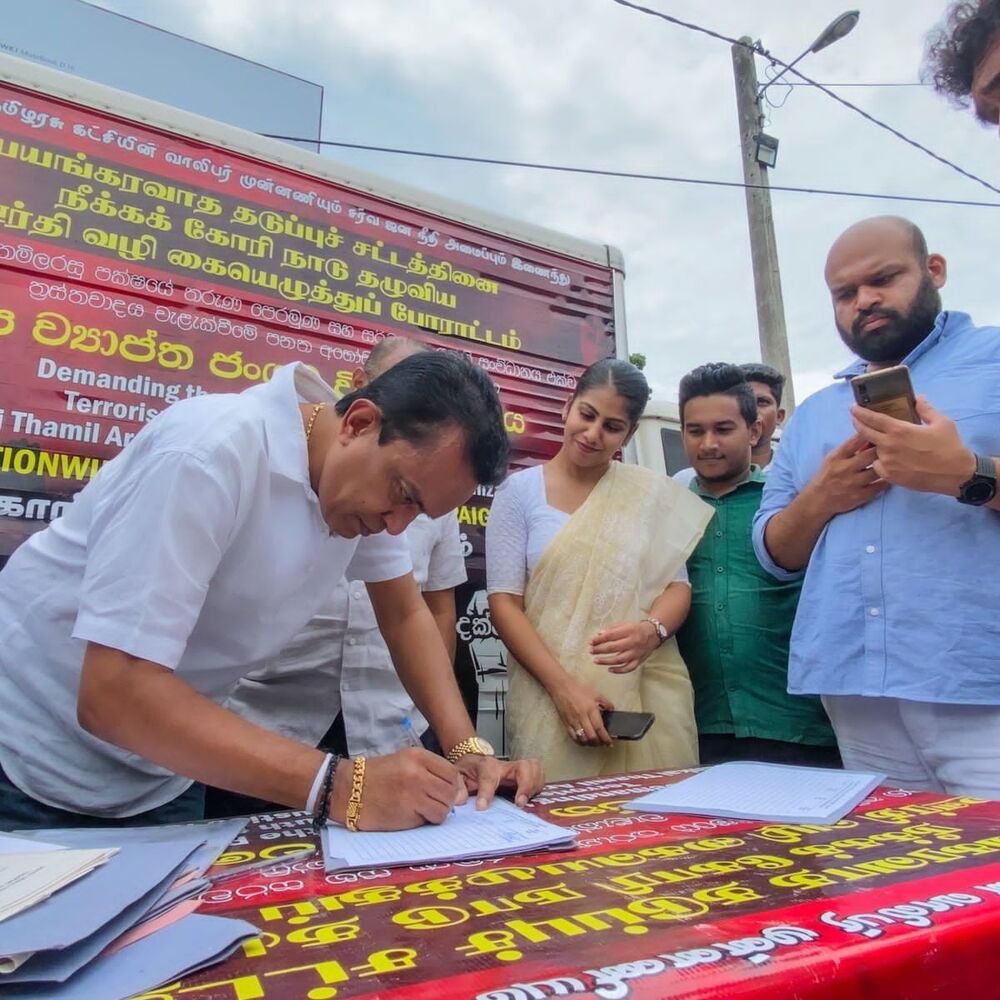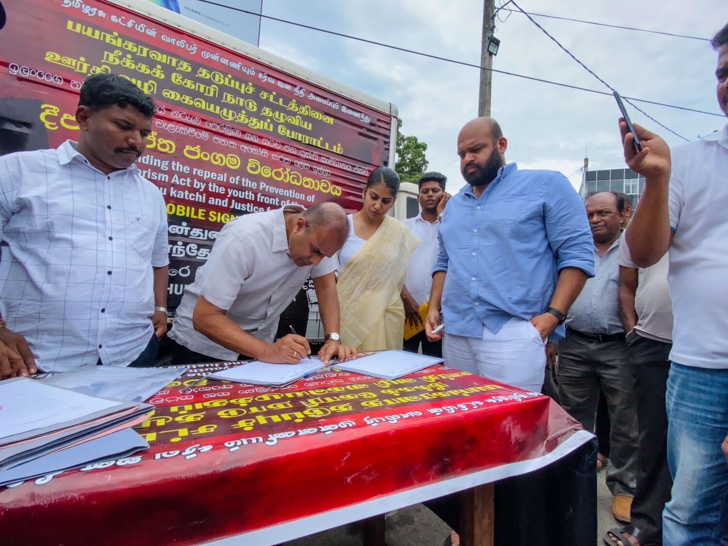பயங்கரவாத தடை சட்டத்தினை நீக்குமாறு வலியுறுத்தி இலங்கை தமிழரசு கட்சியின் ஏற்பாட்டில் காங்கேசன்துறை முதல் ஹம்பாந்தோட்டை வரையில் கையெழுத்துப் போராட்டம் முன்னெடுக்கப்பட்டு வருகின்றது என்பது குறிப்பிடத்தக்கது.