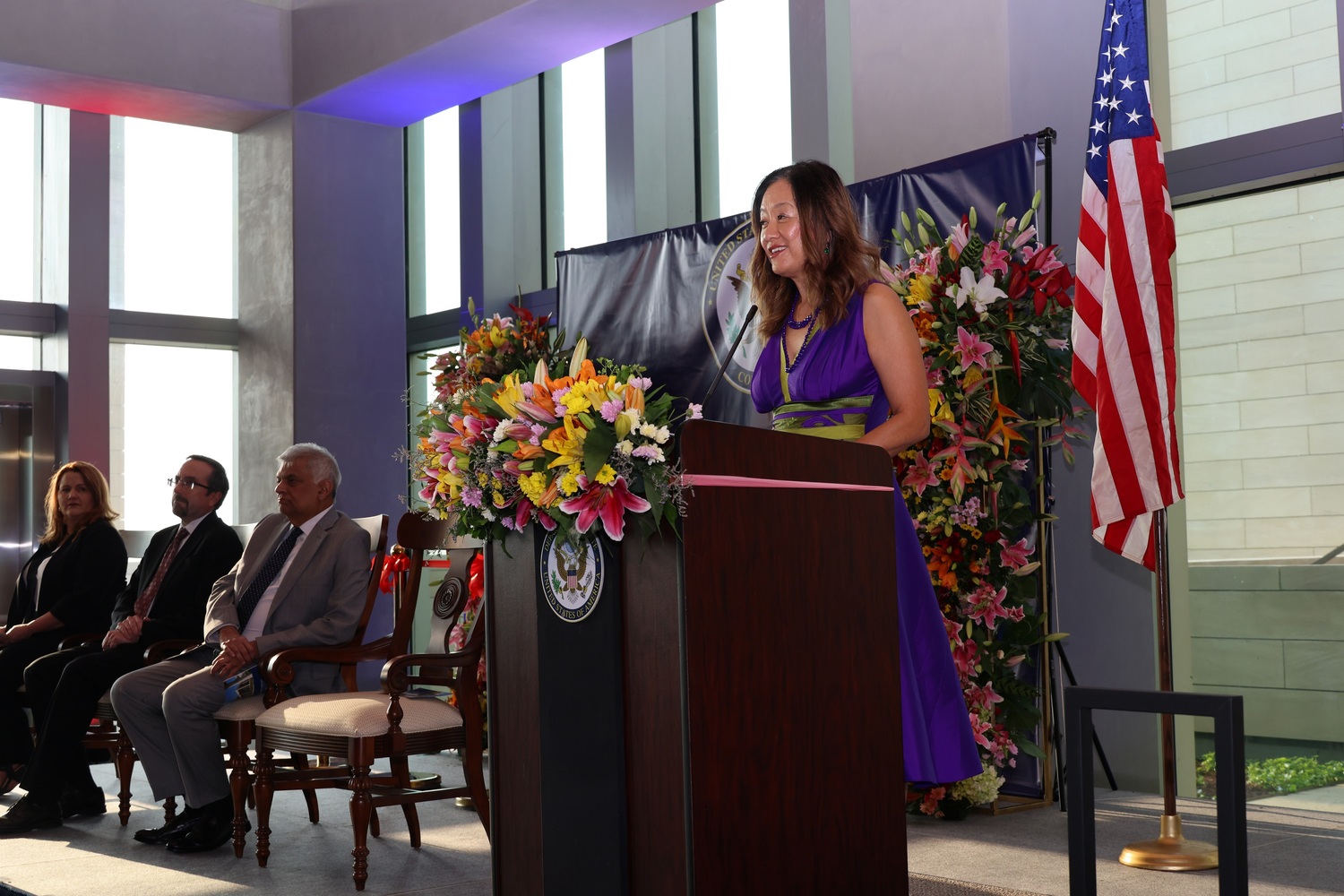 In a celebration of more than 70 years of U.S.-Sri Lankan friendship, partnership, and bilateral ties, the Honorable President Ranil Wickremesinghe, U.S. Ambassador to Sri Lanka Julie Chung, and the U.S. Department of State’s Under Secretary for Management John Bass officially opened the new U.S. Embassy on Galle Road today in a festive event that included officials and private citizens from both countries.