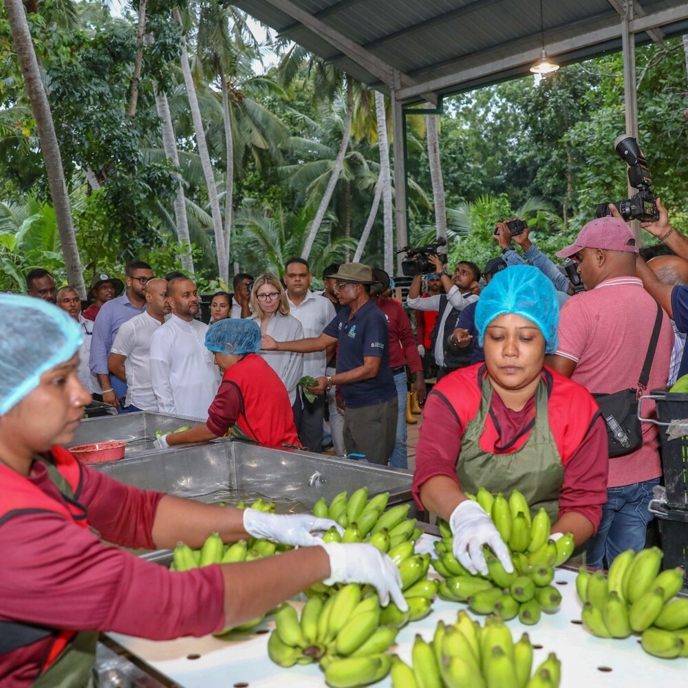 உலக வங்கியின் உதவியுடன் விவசாய அமைச்சினால் நடைமுறைப்படுத்தப்படும் விவசாய நவீனமயமாக்கல் திட்டத்தின் கீழ் ஏற்றுமதியை இலக்காகக் கொண்ட ராஜாங்கனை புளி வாழை செய்கைத் திட்டத்தையும் தூதுக்குழுவினர் பார்வையிட்டனர்.