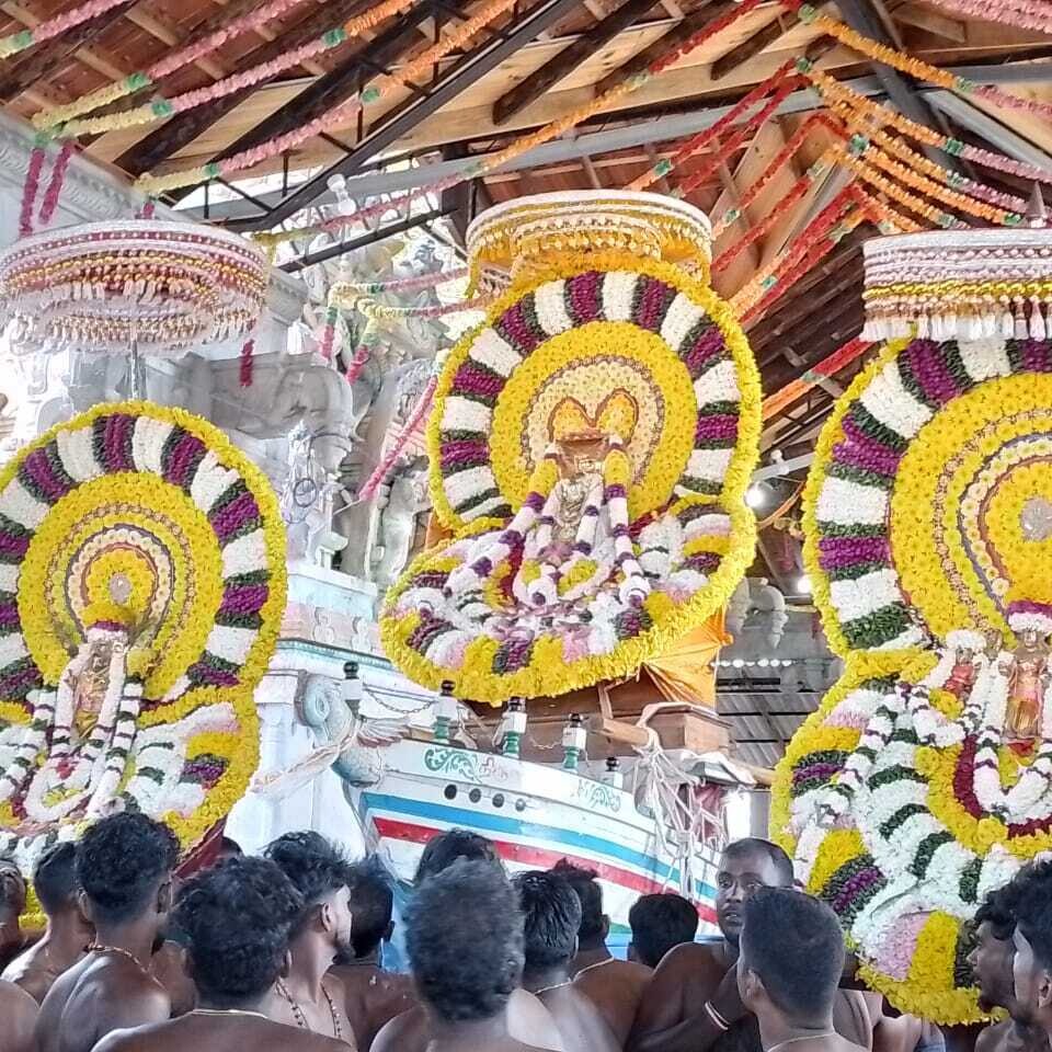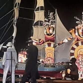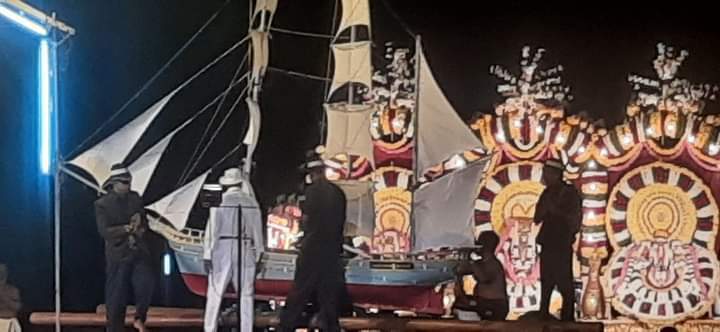 வரலாற்றுச் சிறப்புமிக்க வடமராட்சி கிழக்கு நாகர்கோவில் பூர்வீக நாகதம்பிரான் ஆலய சிறப்புத் திருவிழா வான கப்பல் திருவிழா நேற்று முன்தினம் சனி (30) இரவு நடைபெற்ற போது வரலாற்றை எடுத்துக் கூறும் கப்பலில் வந்த வெள்ளைக்காரர்கள் போல் சிலர் தோன்றுவதையும் அருகில் நாகேஸ்வரப்பெருமான் வீற்றிருப்பதையும் தென்னிந்திய கர்நாடக சங்கீத பக்தி திரைப் படப் பாடகி திருமதி நித்தியஸ்ரீ மகாதேவன் இசைக்கச்சேரி நிகழ்த்துவதையும் நாகேஸ்வரப்பெருமான் பிள்ளையார் முருகப் பெருமான் சகிதம் வீதி உலா வருவதையும் படங்களில் காணலாம்.