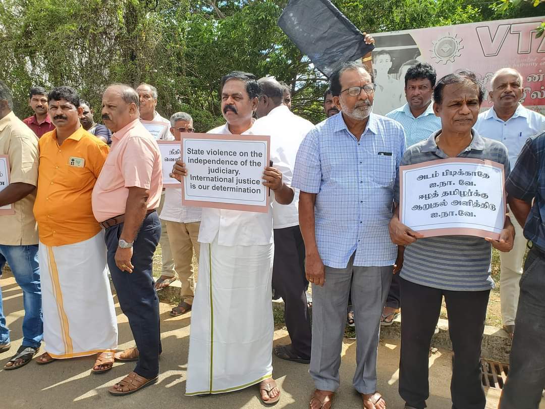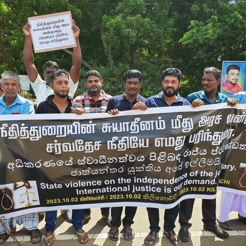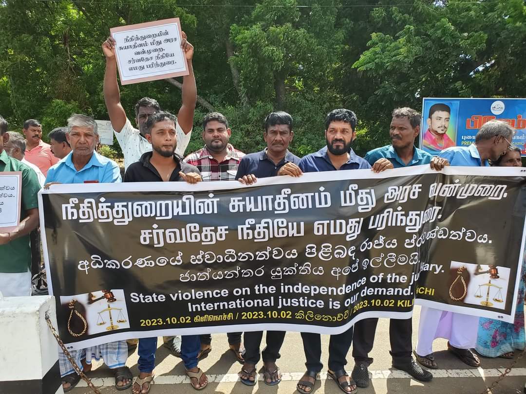 இலங்கைத்தீவில் நீதித்துறை மீது அரச நிருவாகத்துறையினரால் மேற்கொள்ளப்பட்டுவரும் பல்வகை நெருக்கீடுகள் காரணமாக, நாட்டைவிட்டு வெளியேறிச்சென்றுள்ள முல்லைத்தீவு மாவட்ட நீதிவான் வு. சரவணராஜாவிற்கு நீதியும், பாதுகாப்பும் கிடைக்கக் கோரியும், நீதித்துறையினது சுயாதீனத்தைப் பாதுகாக்கக் கோரியும், தமிழ்த் தேசியக் கூட்டமைப்பு (இலங்கைத் தமிழ் அரசுக் கட்சி) கிளிநொச்சி மாவட்டக் கிளையின் ஏற்பாட்டில் நேற்றைய தினம் 2023.10.02 ஆம் திகதி கிளிநொச்சி நகரில் கவனயீர்ப்புப் போராட்டம் ஒன்று முன்னெடுக்கப்பட்டுள்ளது.