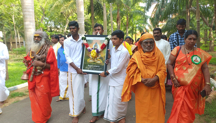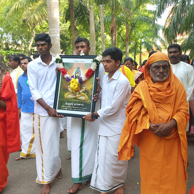 பரமேஸ்வரன் ஆலயத்தில் இடம்பெற்ற விசேட பூசை வழிபாடுகளைத் தொடர்ந்து திருமூலரின் உருவப்படம் தாங்கி வரப்பட்டு நிகழ்வு நடைபெறும் கைலாசபதி அரங்கிற்கு கொண்டு வரப்பட்டது.