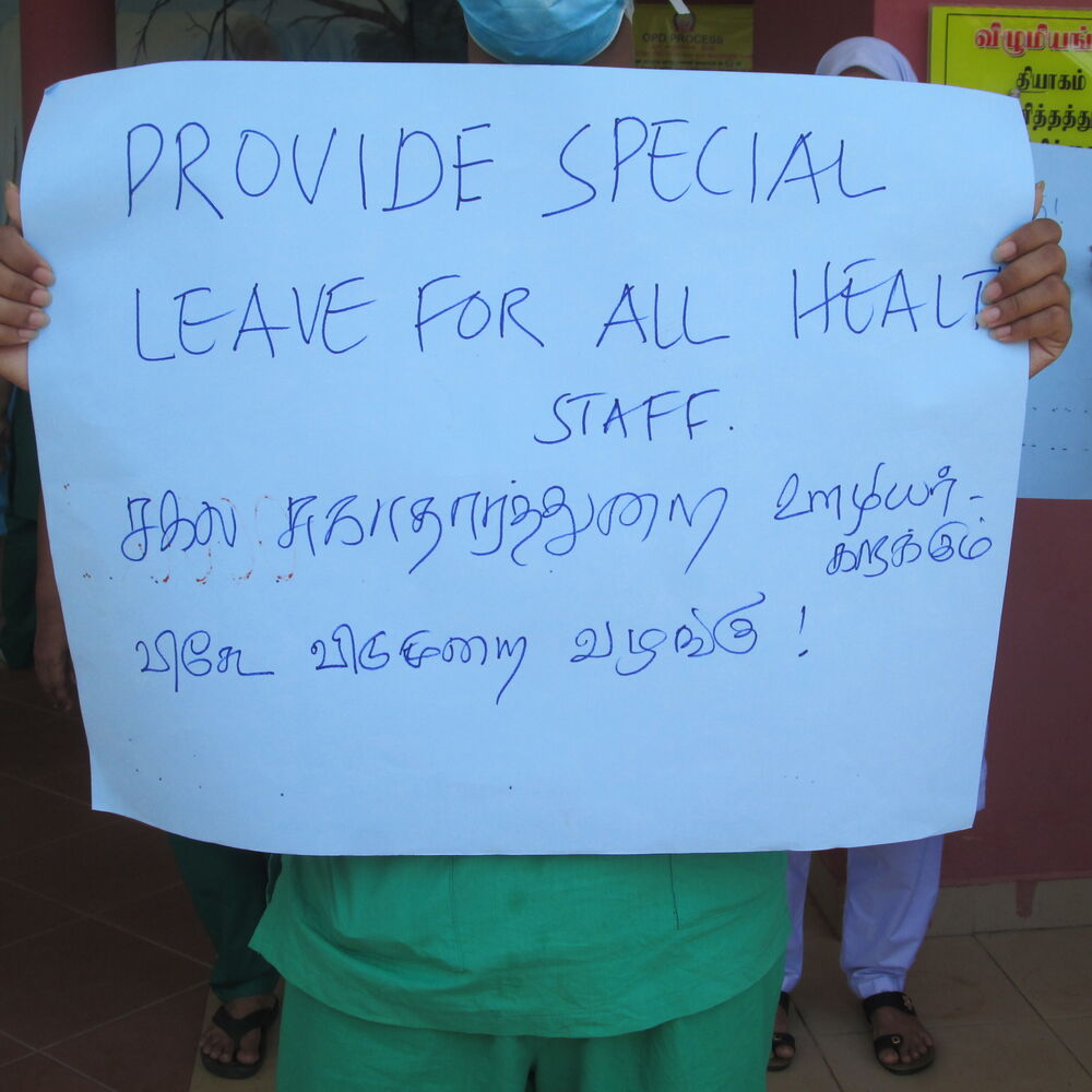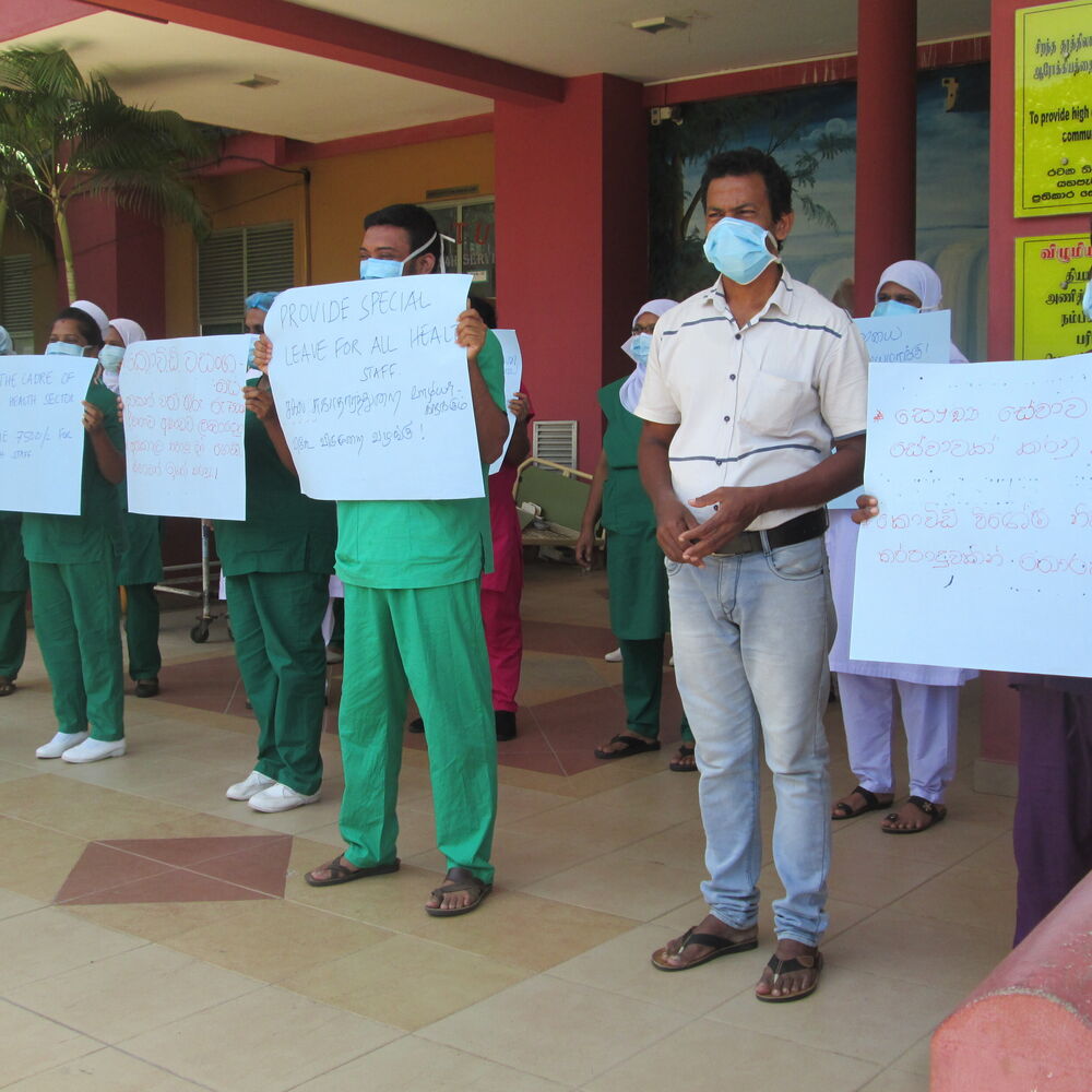 இதேவேளை குறித்த சுகாதார ஊழியர்களின் கோரிக்கைகள் குறித்து பேச்சு வார்த்தை நடத்தி தீர்வு வழங்கப்படுமென சுகாதார அமைச்சர் கெஹலிய ரம்புக்வெல தெரிவித்துள்ளார்.