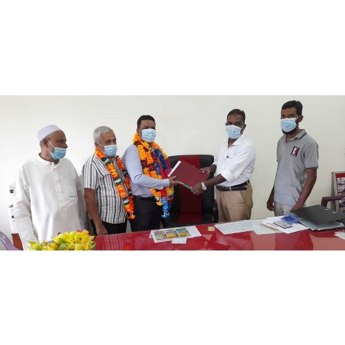 இதன்போது பாடசாலை அபிவிருத்தி சங்கத்தினராலும் உதவி அதிபர் எம்.எம்.நிஸார் மற்றும் ஆசிரியர்களினாலும் நலன் விரும்பிகளினாலும் அவர் வரவேற்கப்பட்டதுடன் இங்கு அதிபராகக் கடமையாற்றி, கல்முனை அல்பஹ்ரியா தேசிய பாடசாலைக்கு அதிபராக இடமாற்றம் பெற்றுச் செல்கின்ற எம்.எஸ்.எம்.பைசால் அவர்களிடமிருந்து பொறுப்புகளைக் கையேற்றார்.