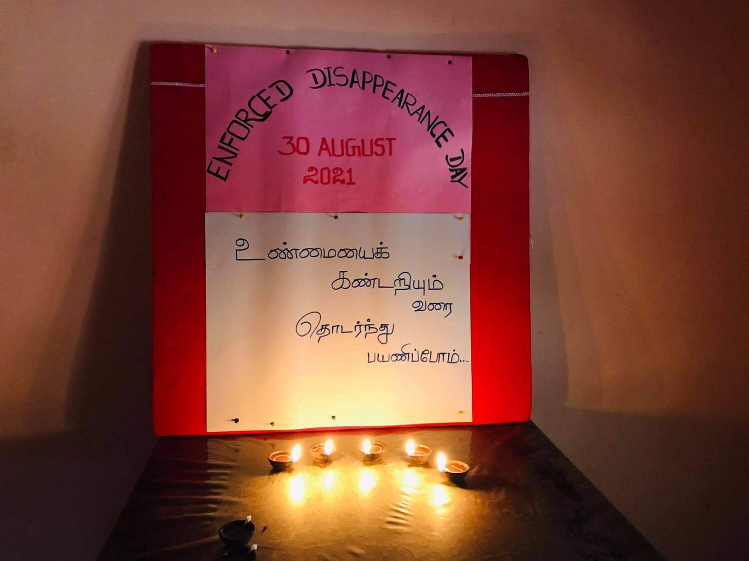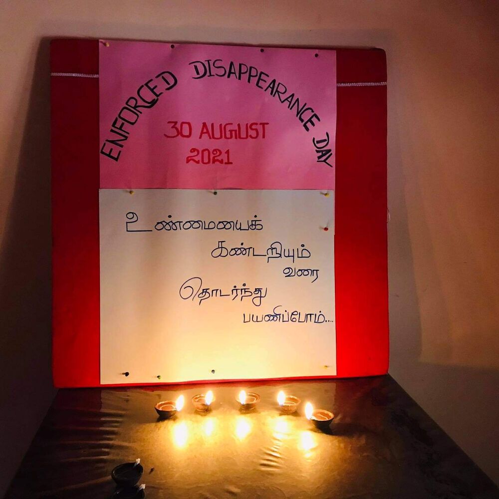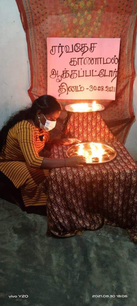 கொரோனா தொற்று நோய் காரணமாக இலங்கை அரசால் நாடு முடக்கப்பட்டுள்ள நிலையிலும் சர்வதேச காணாமல் ஆக்கப்பட்டோர் தினத்தை முன்னிட்டு வலிந்து காணாமல் ஆக்கப்பட்டோர்களின் உறவினர்கள் தங்கள் இல்லங்களில் தீபங்கள் ஏற்றி காணாமல் ஆக்கப்பட்டவர்களின் தொடர்பாக இறை வேண்டுதல் வேண்டியும் சர்வதேசத்துக்கான கவனயீர்ப்பு நிகழ்வுகளையும் மன்னாரில் அமைதியான முறையில் நடாத்தினர்.