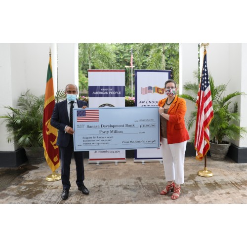 Today, the United States provided $40 million in financing to SDB Bank in order to bolster Sri Lanka's Small and Medium sized Enterprise (SME) sector and assist women entrepreneurs. The loan is part of $265 million in funding the U.S. International Development Finance Corporation (DFC) is providing to Sri Lankan banks, including SDB Bank, DFCC Bank, and NDB Bank, to promote international investment and inclusive economic growth.