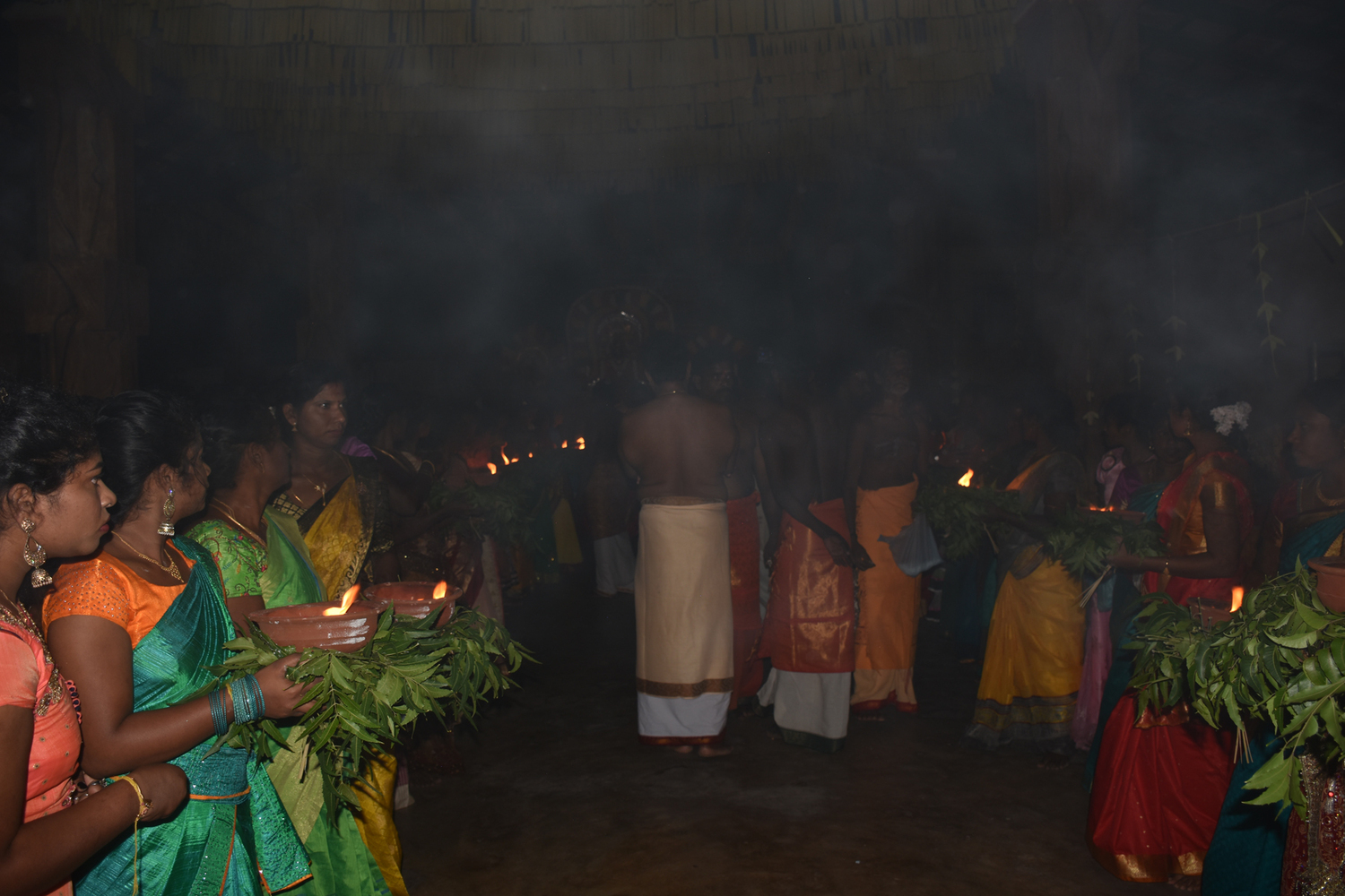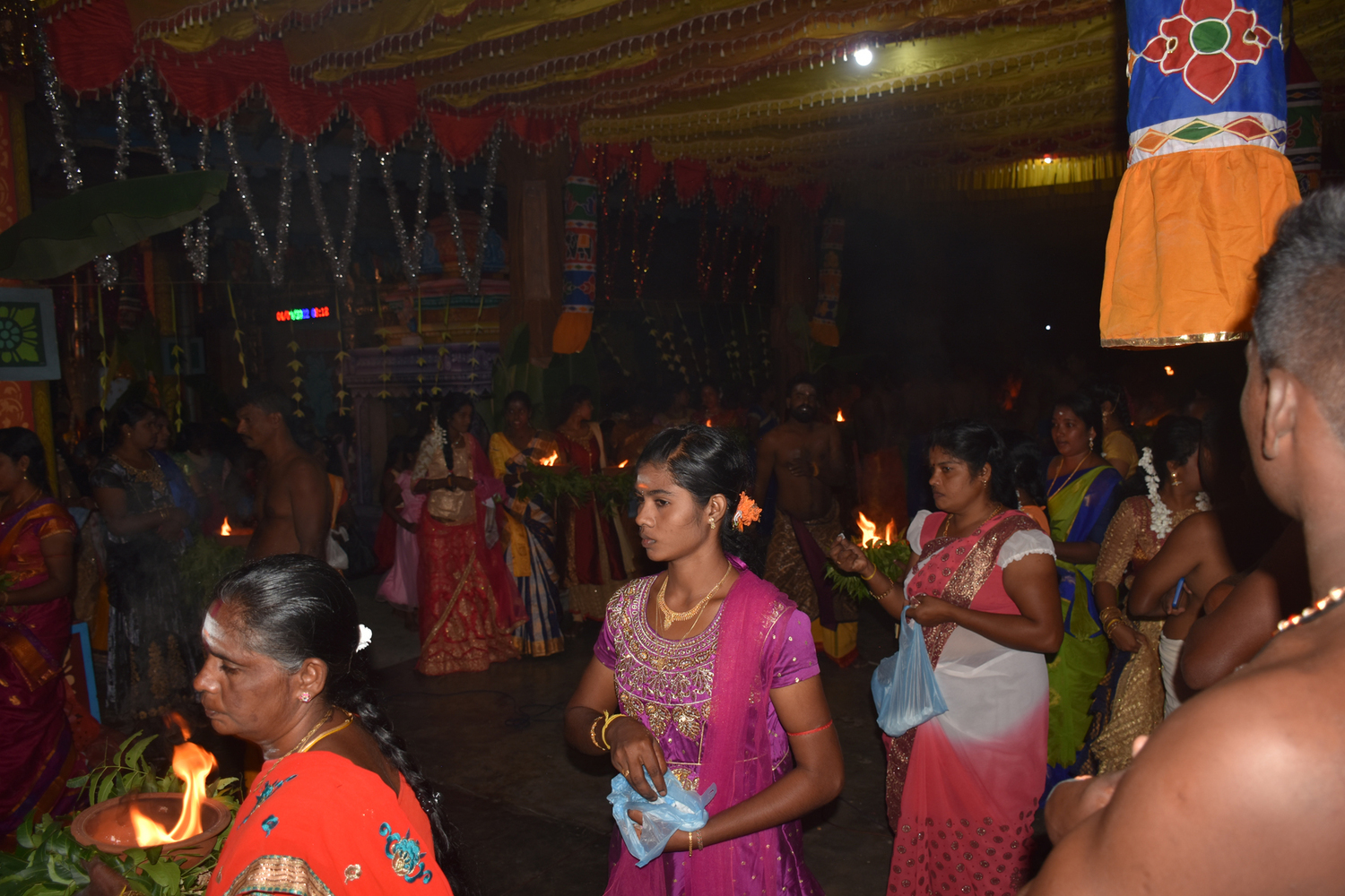 கற்பூரச் சட்டிகளை தங்கள் கைகளில் ஏந்தியவாறு அம்பிகையுடன் வலம் வந்தனர் மாதர்கள்
