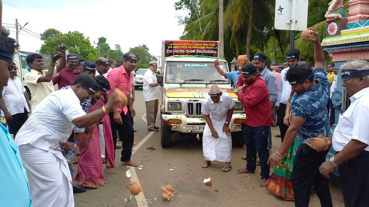 நேற்று முற்பகல் 10 மணியளவில் மாவிட்டபுரம் கந்தசாமி கோயிலிலிருந்து சிதறு தேங்காய் உடைக்கப்பட்டு ஆரம்பமான ஊர்தி வழிப் போராட்டம் காங்கேசன்துறை தொடக்கம் 25 மாவட்டங்களுக்கும் சென்று இறுதியில் அம்பாந்தோட்டை நகரைச் சென்றடையவுள்ளது.