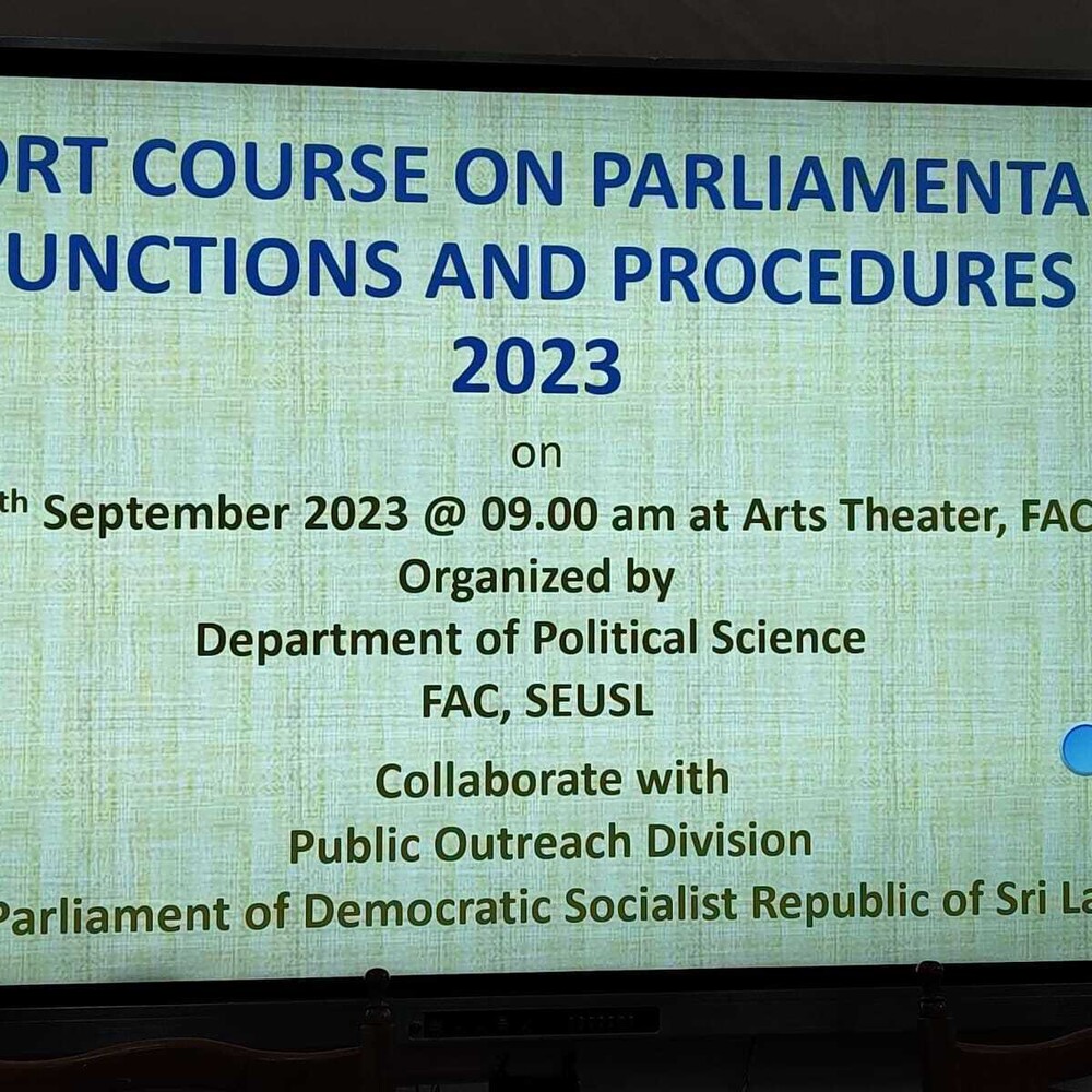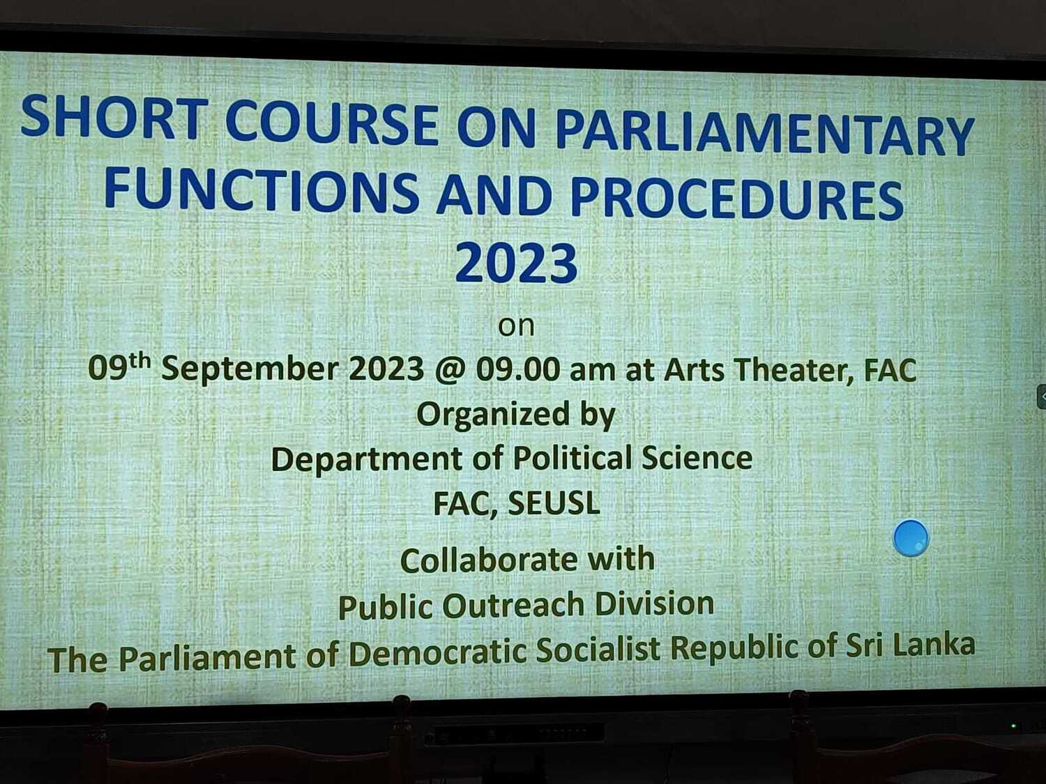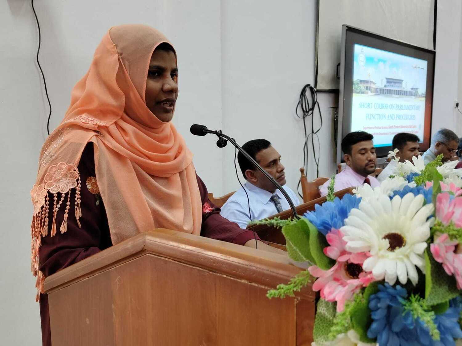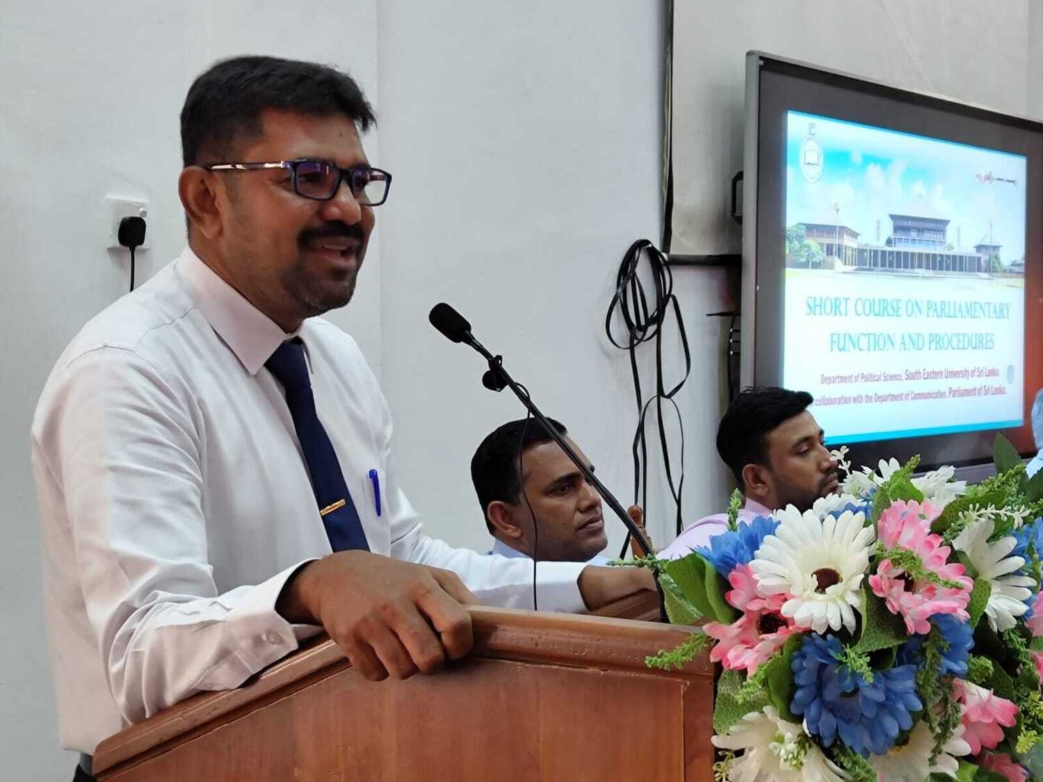 இந்த வகையில் இலங்கை தென்கிழக்கு பல்கலைக்கழகத்தின் கலை, கலாச்சார பீட அரசியல் விஞ்ஞானத்துறையுடன் இணைந்து குறுங்காலக் கற்கை நெறியாக பாராளுமன்ற செயற்பாடுகளும் ஒழுங்கு முறைகளும் பற்றிய கற்கை நெறியை நடத்துவதற்கு இலங்கை ஜனநாயக சோஷலிசக் குடியரசின் பாராளுமன்றம் முன்வந்தமை எமது மாணவர்களுக்கு கிடைத்த பெரும்பேறாகும்.” இவ்வாறு, இலங்கை தென்கிழக்கு பல்கலைக்கழக கலை, கலாச்சார பீட பீடாதிபதி பேராசிரியர் எம்.எம். பாஸில் கூறினார்.