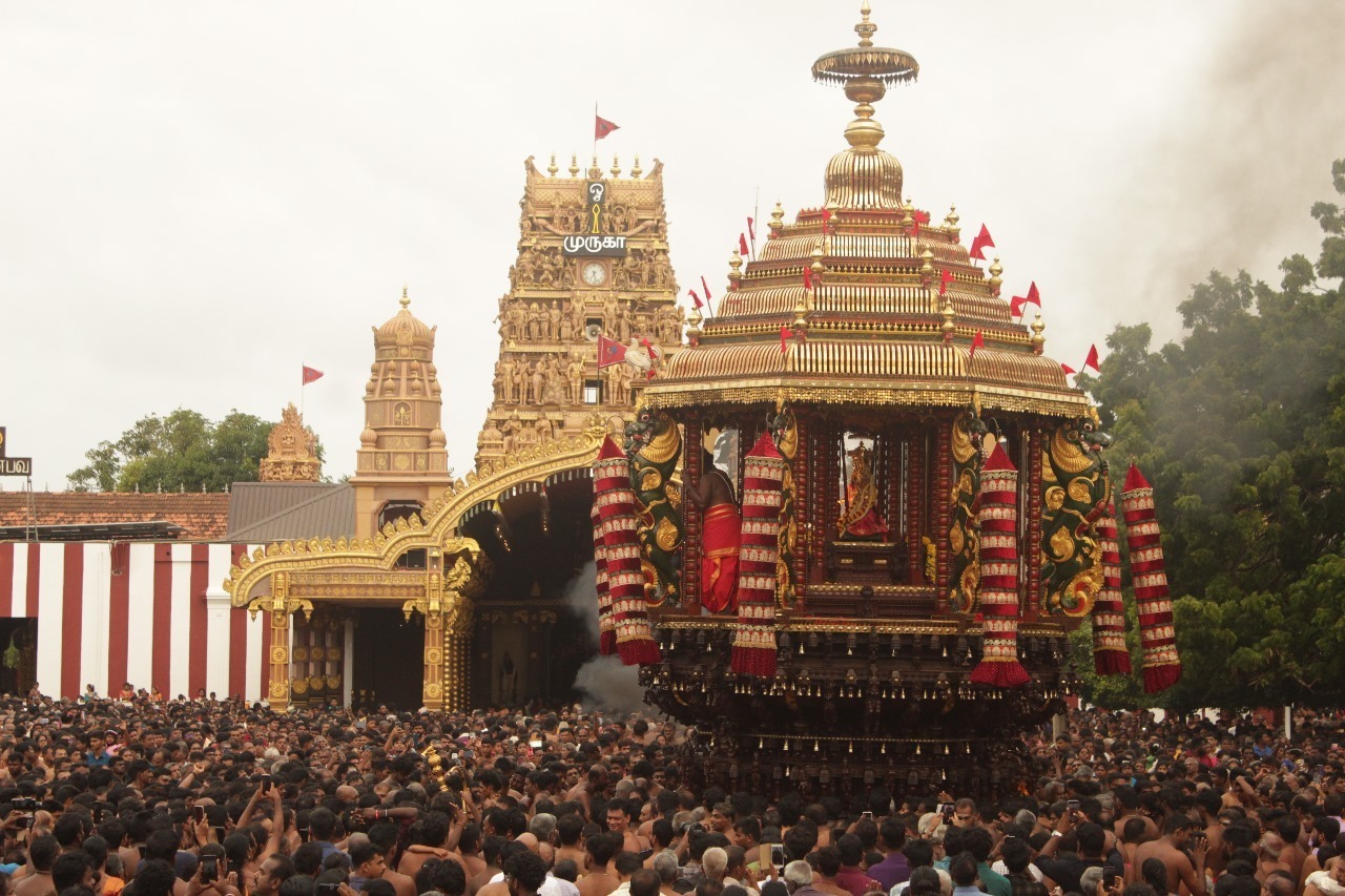 இச் சரித்திரப் பிரசித்திபெற்ற யாழ்ப்பாணம் நல்லூர் கந்தசுவாமி கோவிலின் தேர்த்திருவிழாவின் போது கணக்கிடமுடியாத பல்லாயிரக் கணக்கான பக்தர்கள் கூடி முருகக் கடவுளின் தேரினைப் புடைசூழ வீதியினில் வலம் வந்து அனைவருக்கும் அருளபாலிக்கும் அழகினை பார்ப்பதற்கு இரு கண்கள் போதாது.